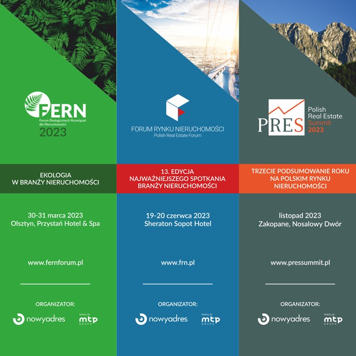 Marcowe Forum Ekologicznych Rozwiązań dla Nieruchomości (FERN), czerwcowe Forum Rynku Nieruchomości (FRN) i listopadowy Polish Real Estate Summit (PRES). Zapraszamy na nowe strony internetowe konferencji dedykowanych branży nieruchomości organizowanych przez Nowy Adres.